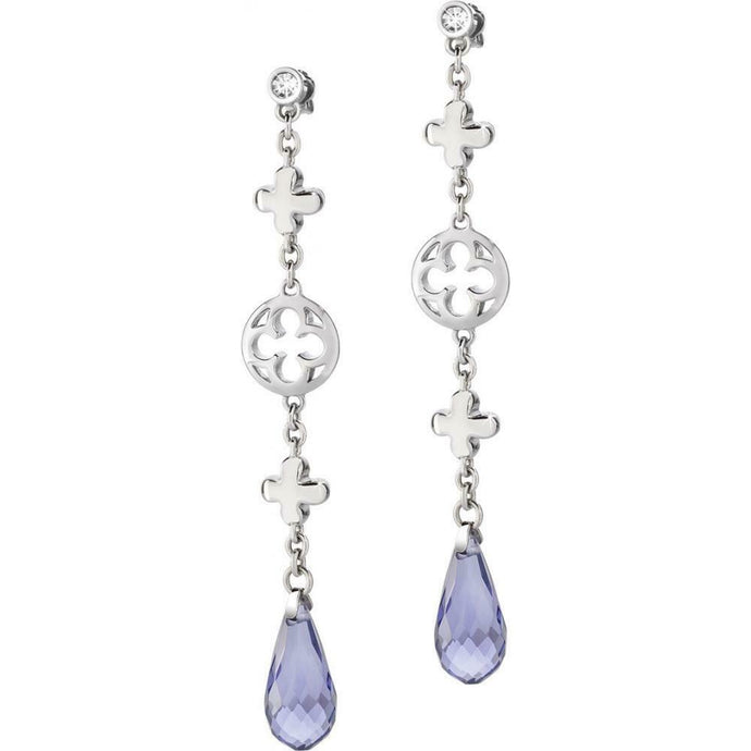 Morellato Gioielli Orecchini In Acciaio Lunghi Pietra Viola E Diamantino