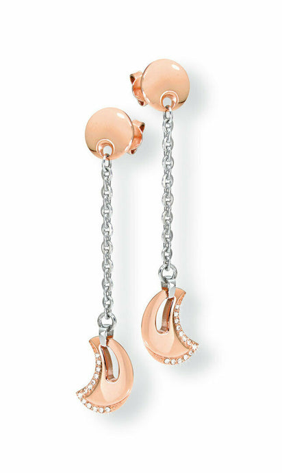 Morellato Gioielli Orecchini In Acciaio Lunghi Rose' Con Cristalli Bianchi