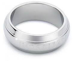 Anello in acciaio anallergico modello a fascia larga con scritta morellato.