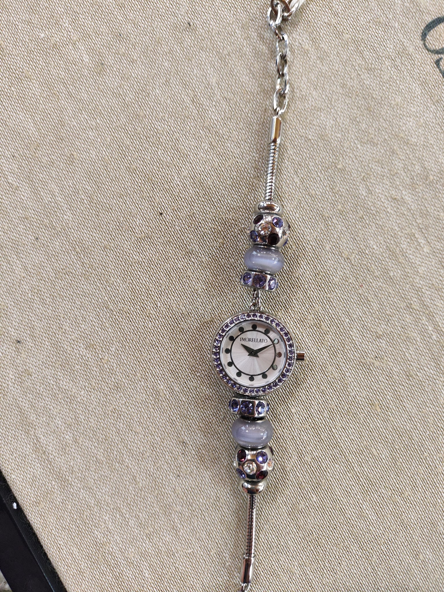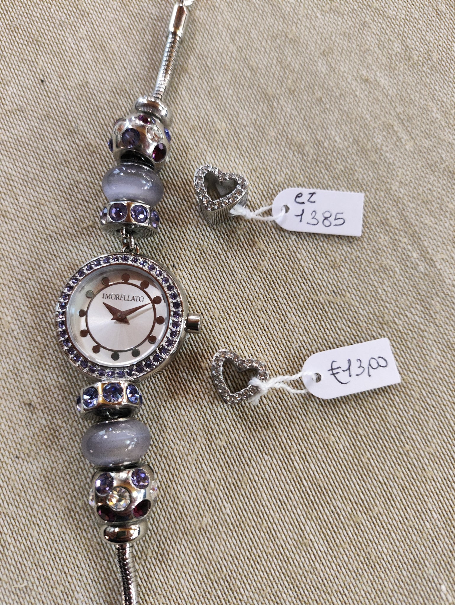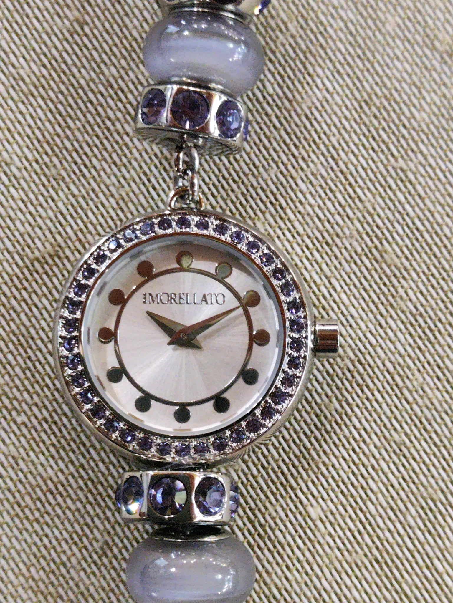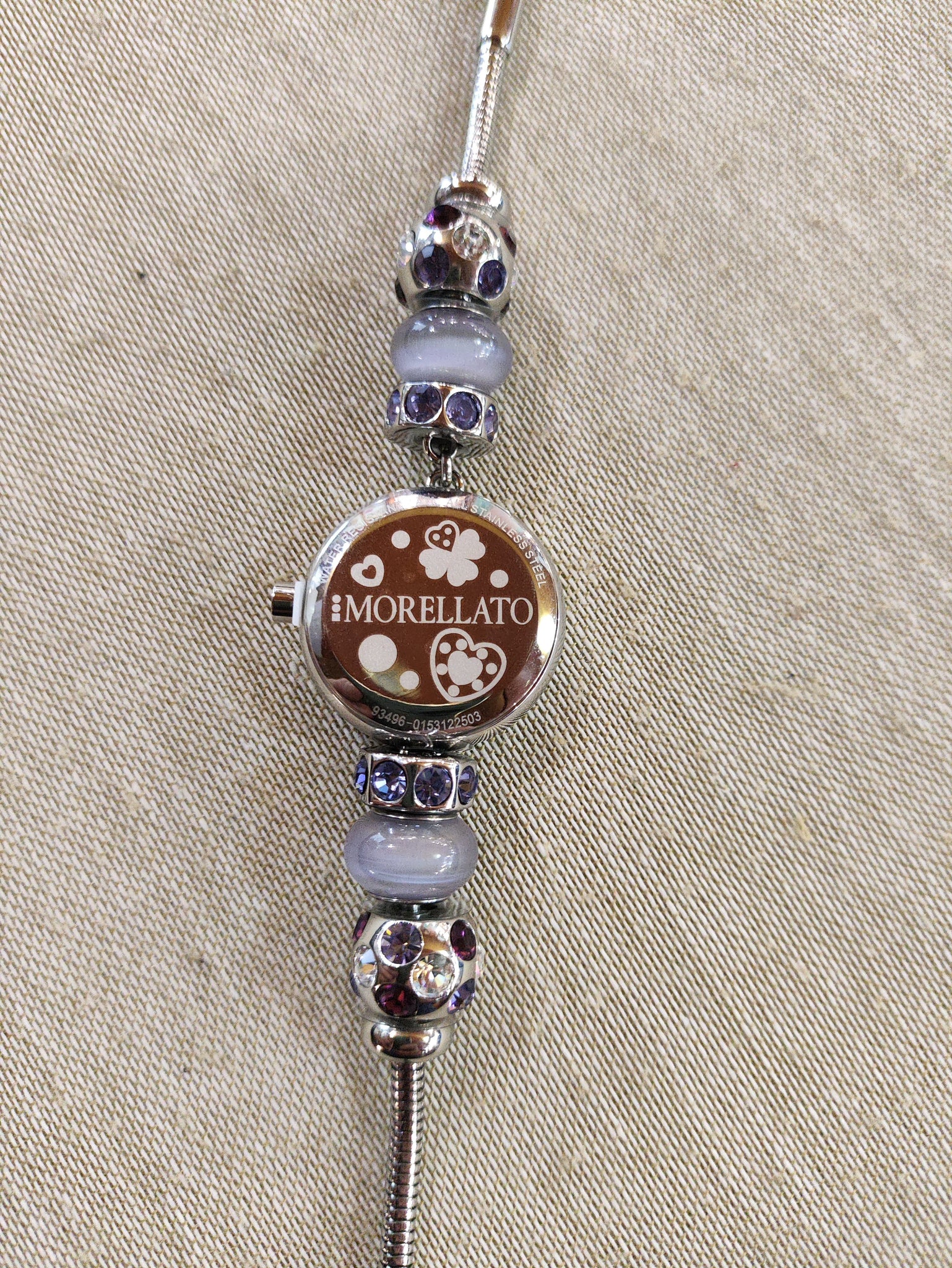 Orologio donna Morellato collezione "DROPS" - con aggiunta i 2 charm a cuore con pietre bianche.R0153122503- Bracciale in acciaio anallergico maglia "snake" con 6 DROPS e 2 Blocchi in acciaio, quadrante silver cassa con cristalli tanzanite.