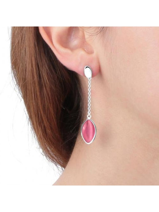 Orecchini donna in acciaio con Occhio di Gatto rosa.