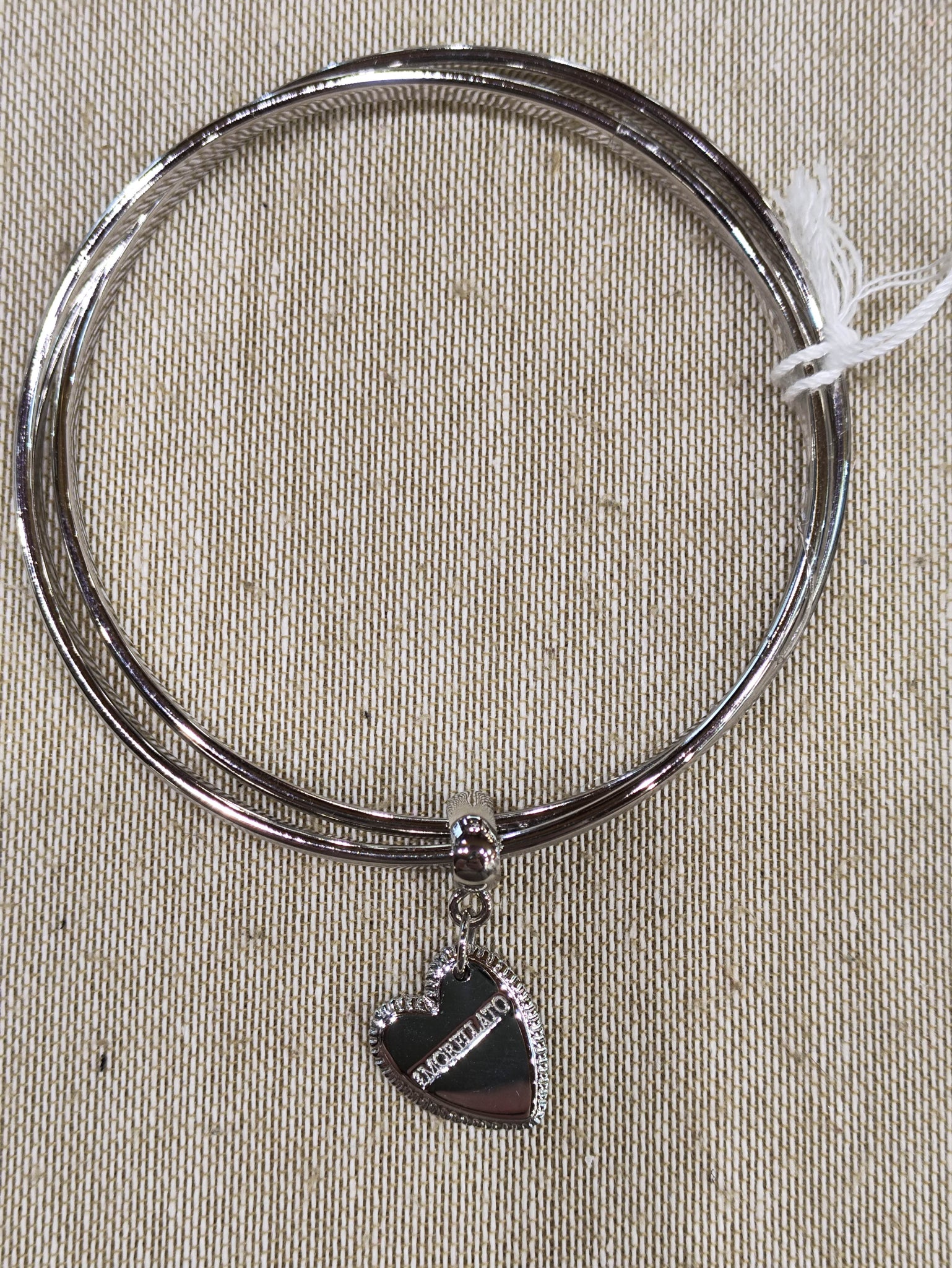 Bracciale in acciaio anallergico rigido doppio con ciondolo a forma di cuore.