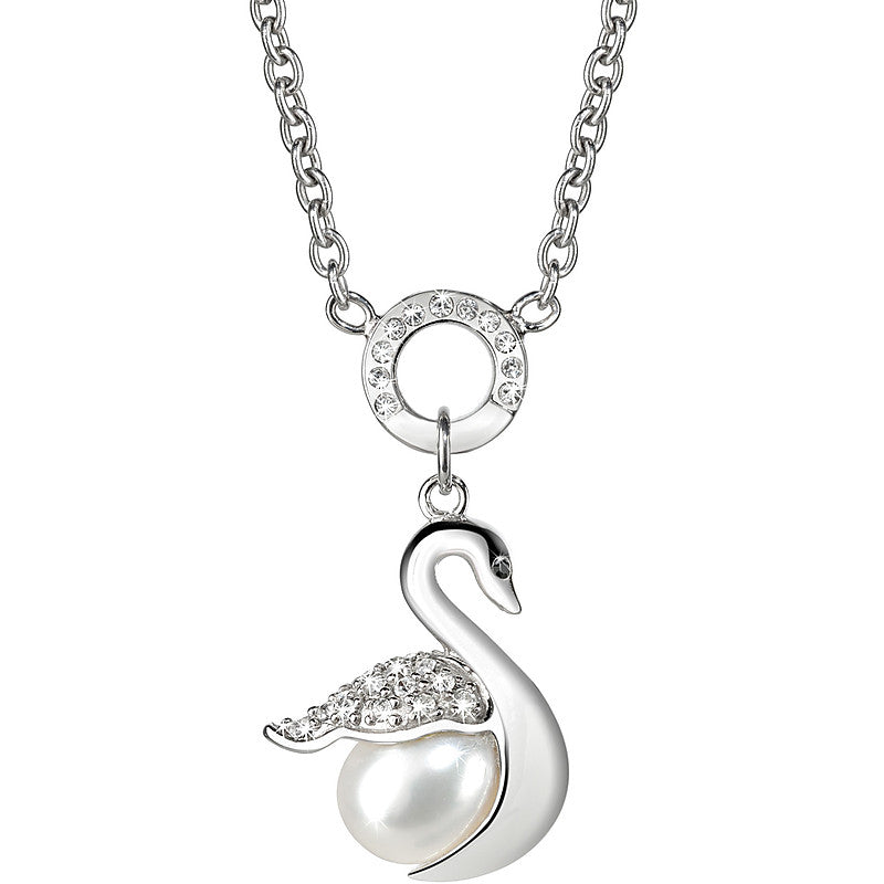 Collana in acciaio anallergico a catena con ciondolo a forma di cigno con 1 perla. Lunghezza 45cm.