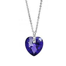 Collana in acciaio anallergico, maglia sottile con ciondolo formato da una pietra sfaccettata ametista forma di cuore e al centro un decoro di pietre bianche. Lunghezza 45 cm.